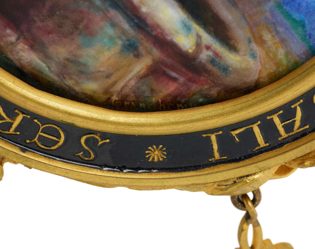 The career of Paul Victor Grandhomme (1851–1944) illustrates how the 19th century rediscovery of painted enamel inspired new artistic vocations. Trained as a jeweller, he encountered Claudius Popelin’s L’Émail des peintres in Épernay during the Commune. Fascinated by its combination of technical rigor and poetic expression, he trained with Eugène Gaigneré, installed a kiln in his Paris apartment, and by 1874 exhibited an enameled portrait of Vittoria Colonna at the Salon des artistes français.