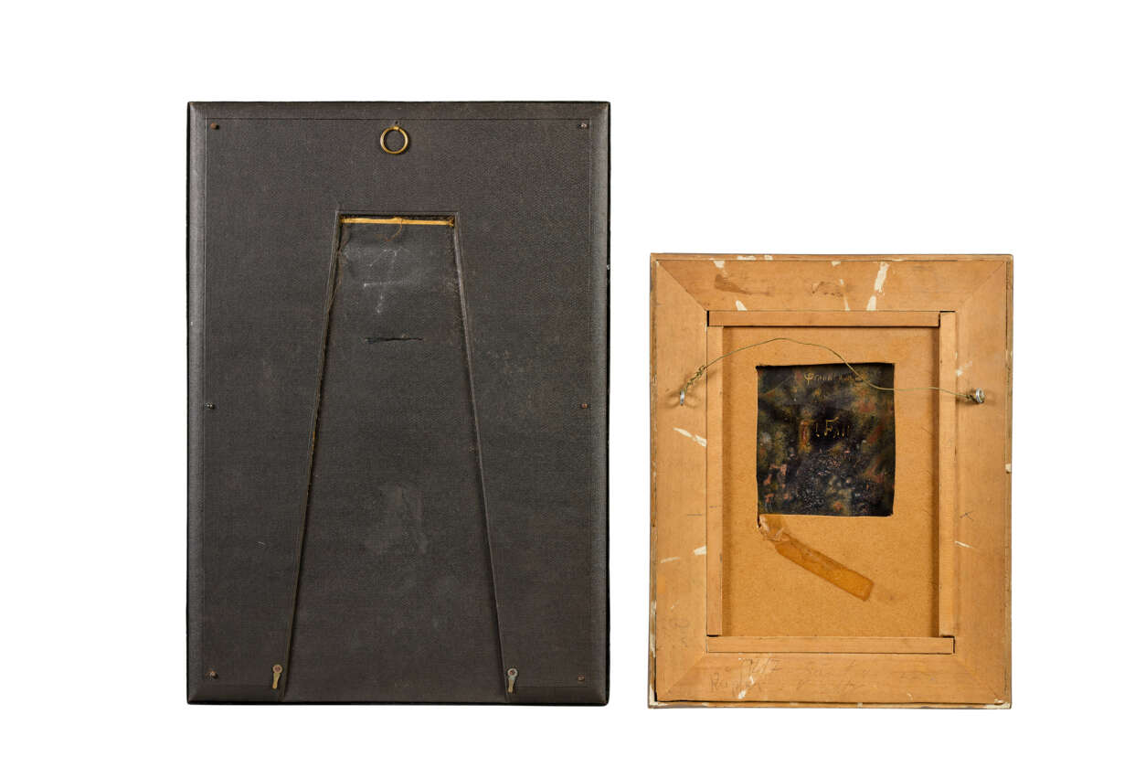40,5 x 28,5 cm. (16 x 11 ¼ in.), avec cadre ; 25 x 12,7 cm. (9 7/8 x 5 in.), à vue et 30,2 x 24 cm. (11 7/8 x 9 ½ in.), avec cadre ; 21 x 14,5 cm. (8 ¼ x 5 ¾ in.), à vue(2)
