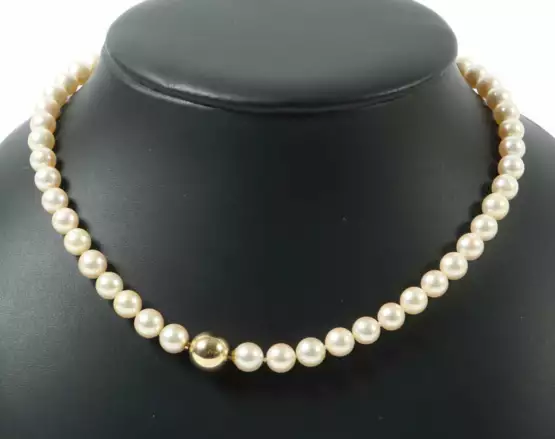 Lot 1436 | Perlenkette 20. Jhr., Perlenkette im Verlauf, Kugelschließe in Gelbgol…