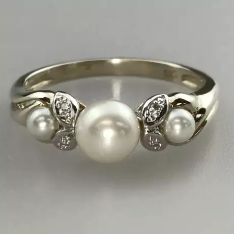 Lot 243 | Perlring - Gelbgold 585/000 (14K), Ringkopf mit ve…