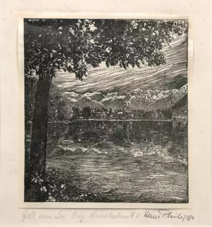 Lot 208 | Philipp, Hans "Zell am See", Orig. Linolschnitt, signiert u.r., 20x17,5 cm, im Passepartout hinter Glas und Rahmen