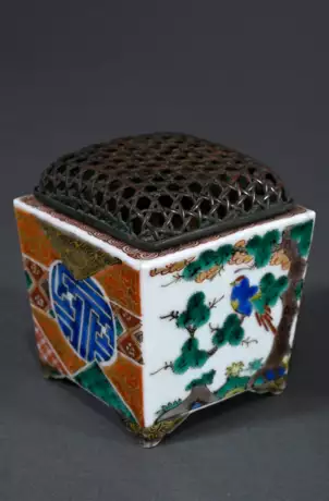 Lot 1327 | Square Kutani Koro with openwork copper lid, colou…