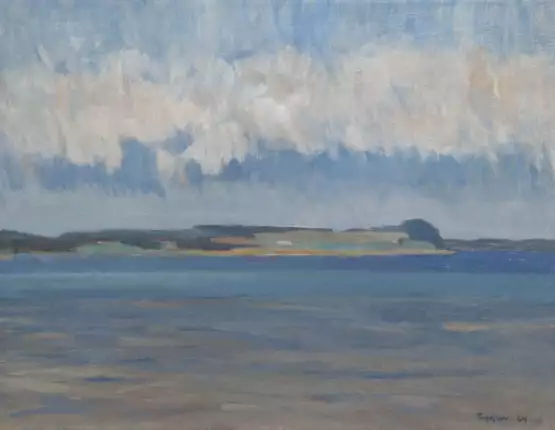 Lot 84 | "Blaues Ufer", Öl/ Lw., undeutl. sign. u.r. und dat. ´64, 49x63 cm, Rahmen