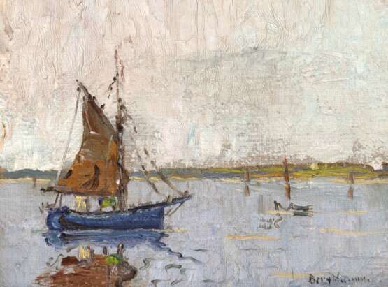 Lot 27 | "Fischerboot", Öl/ Lw., undeutl. sign. u.r., 25,5x32,5 cm, Rahmen