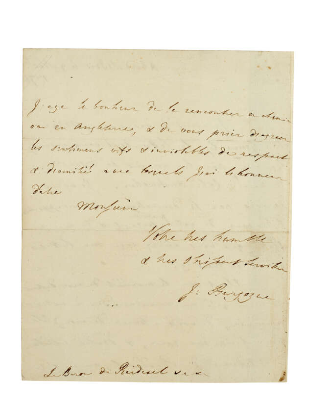 Bound into this copy is a letter from General Burgoyne (1722–1792) to General Reidesel (1738–1800) written in French on board HMS Isis. Burgoyne confirms that he delivered a letter to a Lieutenant Colonel on Reidesel’s behalf and references Reidesel’s wife, Frederika Charlotte.