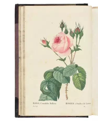 First octavo edition of the Roses with expanded text bound from the original 40 livraisons, corresponding to the edition cited by Stafleu.