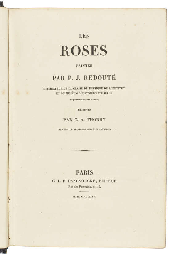 Les Roses peintes par P.J. Redouté... décrites par C.A. Thorry [sic]. Paris: C.L.F. Panckoucke, 1824[-1826].