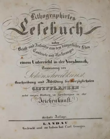 Rümann, Illustr. Bücher 1795. Seltene erste Ausgabe. - Ohne das erste num. Bl. Das andere "colorirte Bild" bezieht sich auf die Deckelillustr. des (hier nicht vorhandenen) Orig.-Einbandes. - Etw. fleckig. Exlibris. - ╔Dabei: Lithographirtes Lesebuch╗ oder Briefe und Aufsätze aus dem bürgerlichen Leben, Contracte und Rechnungen... 6. Aufl. Landau (um 1860). Gr.8°. 218 lithogr. S. (statt 224). - Unvollständig, Gebrauchssp. - Zus. 2 Bde.