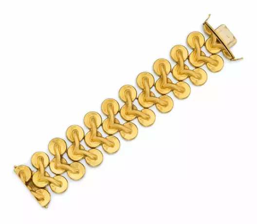 Description: Decorative retro bracelet with circular elements that captivates with its striking, chunky