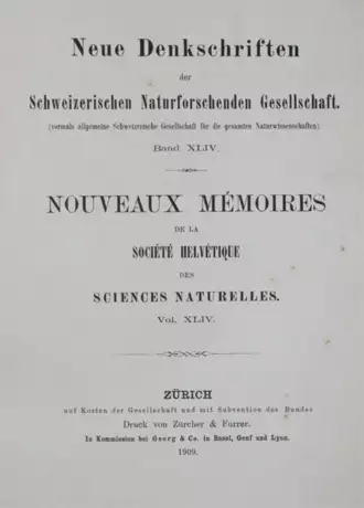 (= Neue Denkschriften der Schweizerischen Naturforschenden Gesellschaft. Bd. XLIV). - Stafleu-Cowan 9230. - Schwach gebräunt u. fleckig. (12982).