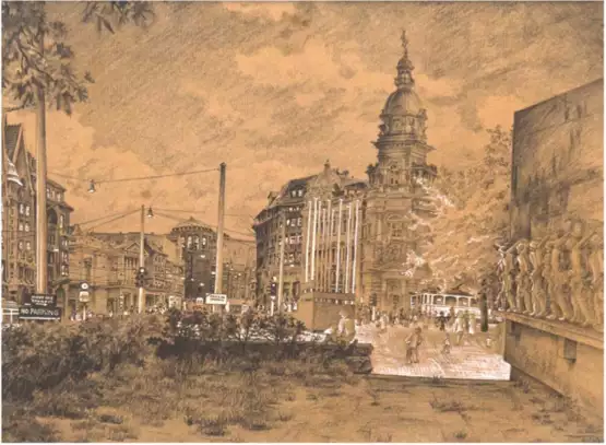 Lot 180 | Ring, Emil "Stadtansicht mit Personenstaffage" Bleistift/ Papier, weiß gehöht, sign. u.r. und dat. 1947, 28x36,5 cm, im Passepartout