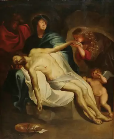 Die Beweinung Christi, nach Peter Paul Rubens. Öl auf Holzplatte. 19, Jhdt. 70 x 50,8 cm. Gerahmt.