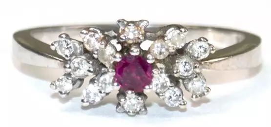 Lot 919 | Rubin-Brillant-Ring, 585er WG, besetzt mit 16 Brillanten von zus. ca. 0,21 ct. und 1 Rubin, Ges.-Gew. 2,87 g, RG 56