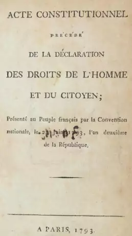 Enthält: I. Acte constitutionnel precede de la declaration des droits de l'homme et du citoyen. Erklärung der Rechte des Menschen und des Staatsbürgers. Paris, o.Dr., 1793. - II. Gustav Sjöborg "Über Volksdespotismus". Um Zusätze vermehrte Übersetzung (durch "K.M.", d.i.?). Leipzig, Heinsius, 1793. Eine von mehreren Ausgabe des Jahres. - III. John Quincy Adams, "Beantwortung der Paineschen Schrift von den Rechten der Menschen". Kopenhagen, Proft, 1793. Aus dem Engl. übersetzt (von Verner Hans Fredrik Abrahamson). - Stempel und Marginalien, vorderer Vorsatz und erstes weisses Blatt fehlen, etwas gebräunt und braunfleckig. (C).