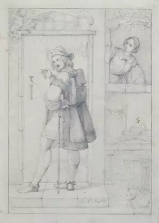 FABER, KARL GOTTFRIED TRAUGOTT (1786-1863), Hütte am Waldesrand. Feder auf Bütten. Sign., nicht dat. (um 1820). 15 x 18 cm. - Mit kleiner Fehlstelle in der linken oberen Ecke, minimalen Fleckchen und verso alten Klebespuren, an der Oberkante montiert. NEHER, BERNHARD (1806-1886; Zuschreibung), Heimkehr. Bleistift auf Papier. Nicht sign., dat. (18)37. 23,5 x 16,8 cm. - Mit winzigen Flecken, leicht gebräunt und angestaubt. DERS., Das Liebeslied. Bleistift auf Papier. Sign., nicht dat. (um 1840). 13,4 x 16,3 cm. - Mit kleinen Flecken und minimal angestaubt. PLETSCH, OSKAR (1830-1888), 2 Vorzeichnungen für Kinderbücher. Bleistift auf Papier. Nicht sign. und dat. (um 1870). 15,3 x 10,6 und 16,6 x 13 cm. - 1 Bl. verso mit weiterer Zeichnung, das andere etw. fleckig, jeweils leicht gebräunt. REINHOLD, FRITZ (19. Jhdt.), Kindergruppe. Bleistift auf Papier. Nicht sign. und dat. (um 1870). 23,5 x 22,3 cm. - Fleckig, verso beschriftet. SCHWIND, MORITZ VON (1804-1871; Zuschreibung), Die charmante Verpflegung. Feder auf Papier. Nicht sign. und dat. (um 1850). 13,4 x 10,5 cm. - Mit vereinzelten Fleckchen und leicht unregelmäßig beschnitten. SEITZ, OTTO (1846-1912; Zuschreibung), Mädchenkopf. Bleistift auf Papier. Nicht sign. und dat. (um 1880). 12,6 x 11,5 cm. - Mit Flecken und etw. gebräunt. SPEETH, PETER (1772-1831), Ruinen mit Spitzbögen. Feder und Aquarell auf Bütten. Sign. und dat. 1801. 19 x 29 cm.