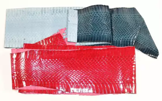 6 weiße, 4 braune, 1 rote u. 1 blaue Schlangenhaut. Wohl Python. Verschied. Längen. bis ca. 160 cm.
