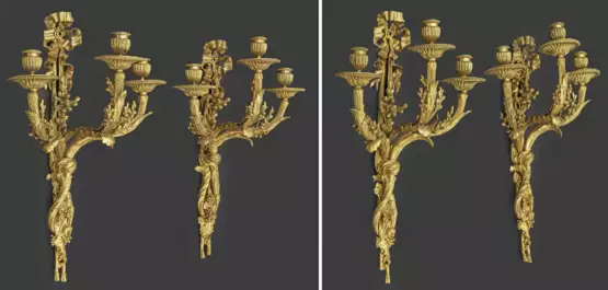 Lot 1530 | Seltene Serie von vier großen Louis XVI-Wandgirandolen