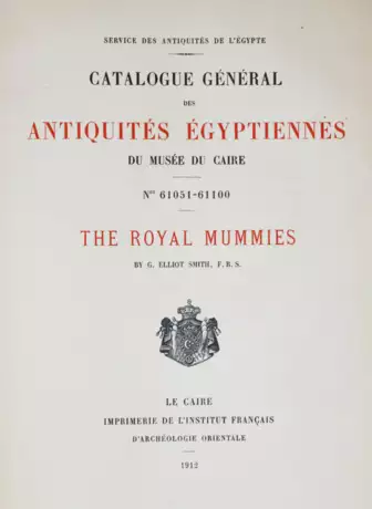 (= Vol. 59 der Reihe). - Seltene erste Ausgabe. Hervorragendes Bildmaterial der im Museum befindlichen Mumien, darunter zahlr. bedeutende Pharaonen. - Buchblock gebrochen, gering gebräunt, Innendeckel mit aufgez. Zeitungsartikel.