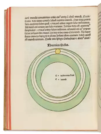 First edition from Ratdolt’s press (sixth overall); first appearance of Ratdolt’s astronomical diagrams with contemporary hand-coloring. The fundamental astronomical textbook of the later Middle Ages, Sphaera mundi is an introductory guide to the geocentric universe, composed for use at the nascent University of Paris and based on the newly available works of Ptolemy and his Arabic commentators. “Sacrobosco’s fame rests firmly on his De sphaera […] It was quite generally adopted as the fundamental astronomy text, for often it was so clear that it needed little or no explanation” (DSB). Similarly, Ratdolt’s addition of detailed astronomical diagrams to this edition, mostly likely crafted by Johannes Lucilius Santritter, was essential for illuminating Puerbach’s work; “The diagrams are of considerable importance, since parts of Peurbach’s text would be unintelligible without them” (DSB).