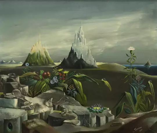 (1909 Nizza 1994). Fantastische Landschaft mit Bergen. Öl auf Leinwand, 1960. 46 x 55 cm. In Öl unten rechts signiert und datiert. Gerahmt.