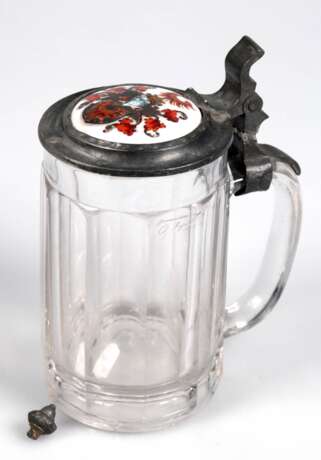Lot 591 | Studentika-Deckelschoppen, mit Adelswappen derer von Hodenberg, Corps Vandalia Heidelberg von 1903/ 04, Zinn-Deckel repariert, Ges.-H. 18 cm