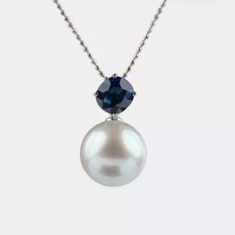 Lot 160 | Südseeperlen Anhänger mit natürlichem Saphir an Kette.
