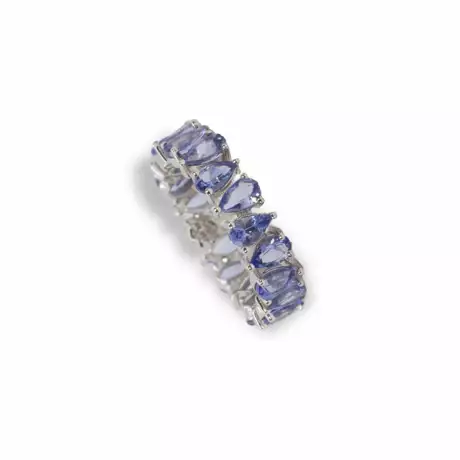 585 white gold, hallmarked, 20 drop-cut tanzanites, total 5.90 ct, RW 55, weight approx. 3.9 g, AIG certificate from 2023 enclosed