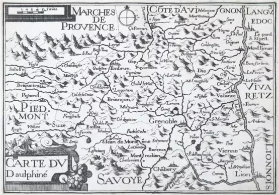 Brunet V, 66. Jordan 3725. - Enthält folgende Provinzen: Bourgogne, Dauphine, Provence, Orange, Languedoc, Foix et Bearn, Guyenne, Poitou, Loire, Beauce. Zwischentitel u. Register tls. mitpag. - Die Tafeln mit Städteansichten, Plänen und Karten. - Meist etw. wasserrandig, tls. in den Rändern etw. wurmspurig.