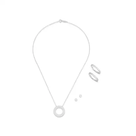 Size/Dimensions: earrings 0.5 cm; necklace 41.0 cm, pendant 2.0 cm; each ring UK ring size R