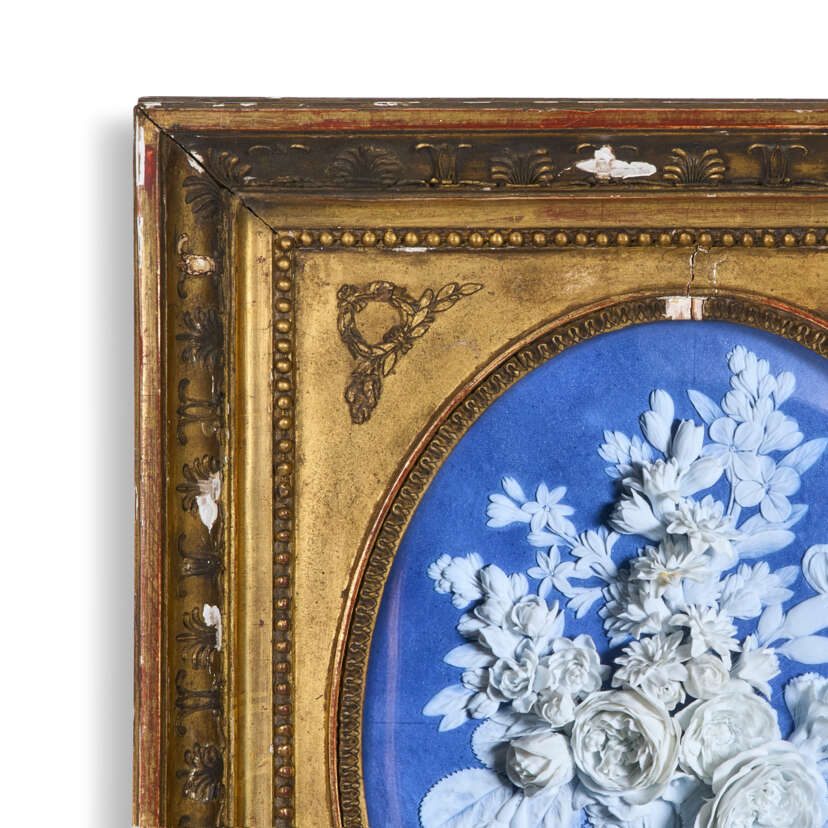 Lot 35 | TWO FRENCH (HARD-PASTE) BISCUIT PORCELAIN BLUE-GROUND FLOWER-ENCRUSTED PLAQUES