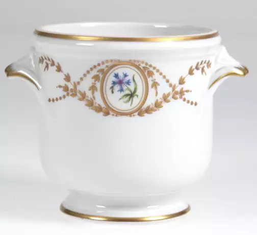 Lot 385 | Übertopf mit 2 seitl. Handhaben, Limoges France, Gold- und Blumendekor, H. 11 cm, Innen-Dm. 10 cm