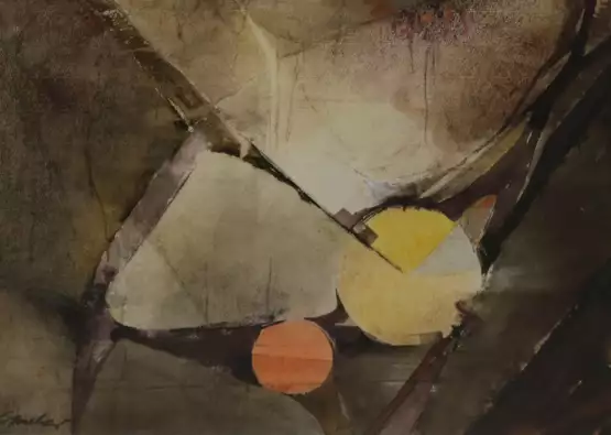 Abstrakte Komposition. 35 x 46,5 cm. 20. Jhdt. Undeutl. sign. Unter Passep. u. gerahmt (nicht ausgerahmt)