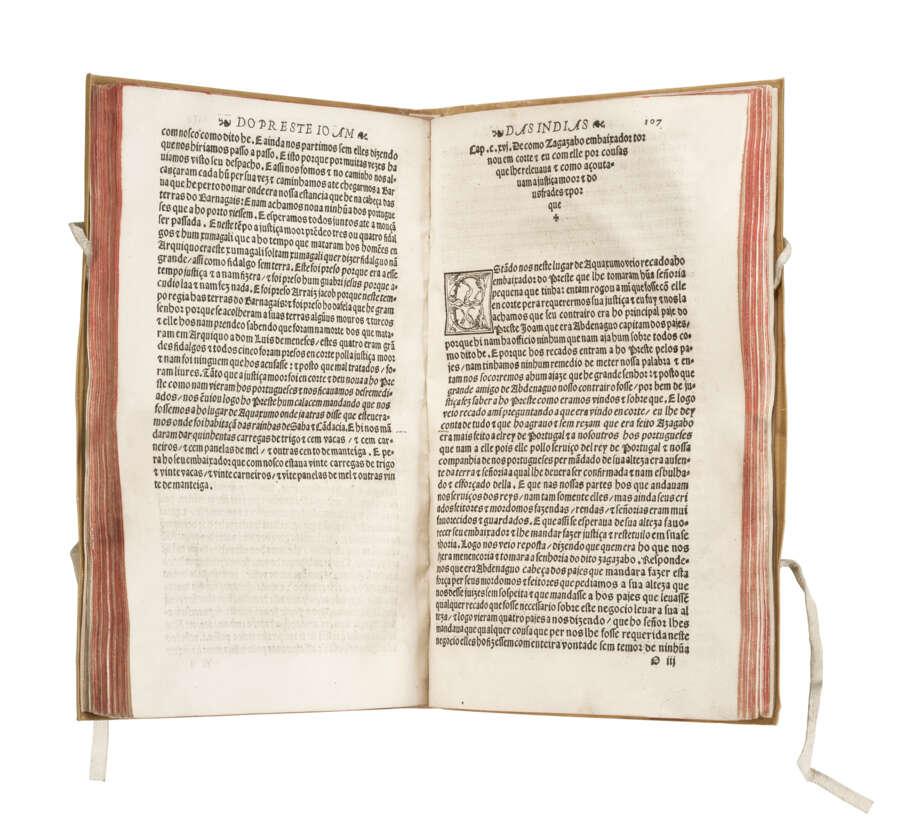 First edition of the most comprehensive European account of Ethiopia to this date, detailing the Empire of Dawit II from first-hand travel. Francisco Álvares was the chaplain on the Portuguese mission to Ethiopia which lasted from 1520 to 1526/1527 and was the first European mission to the area. He was an acute observer and his account attracted wide readership and was translated into several languages. It "includes interesting descriptions of the antiquities of both Aksum and Latibala, accounts of Ethiopian governmental and social institutions, and a narrative of Portuguese negotiations with Lebna Dengel [aka Dawit II]. The work is of a particular interest because it gives a clear picture of the Ethiopian empire in its heyday, just before the invasion of the Muslim conqueror Ahmad ibn Ibrahim, also called al-Ghazi" (Pankhurst, Encyclopaedia Africana). Not in Anselmo; Iberian Books before 1600 513.