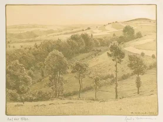 ╔Dabei:Ders.╗, Blick in hügelige Landschaft mit Bachlauf. Farblithogr. 1915. 23 x 17 cm. -╔Ernst Haider╗Verschneites Hochtal, Rad. 1914. 18 x 23,4 cm.╔Hans de Vos╗Eglisbohl am Bodensee. Rad. 1931 cm. 18,8 x 23,3 cm.