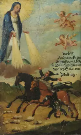 Lot 1714 | Votivbild Oberbayern, 19. Jh., Darstellung die Dankbarkeit der Mutterg…