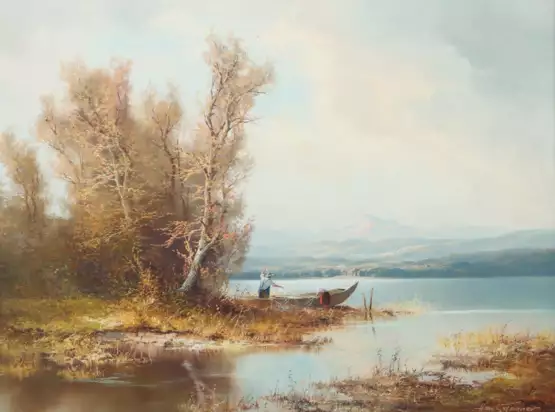 Lot 2271 | Wagner, Hans 1924 - ca. 1982, deutscher Maler. ''Fischer am Bergsee'',…
