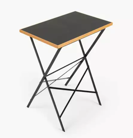 Entwurf 1935, Ausführung Lehni, Dübendorf, um 1980. Schwarz lackiertes Metall, Linoleum und Buchenholz. 55x35x67,5 cm.