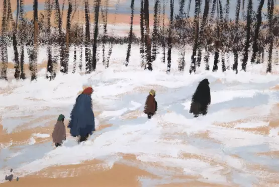 Lot 12 | Wittler, Heinz (Heinrich Arrigo Franz Wittler 1918-2004) "Heimweg durch verschneite Landschaft", Öl/ Hartfaser, monogr. u.l., 32x46,5 cm, Rahmen
