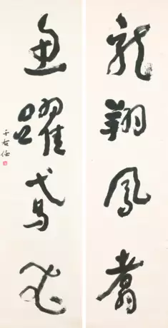Four-character Calligraphic Couplet in Cursive Script