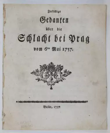 ╔Dabei:╗ (Justi,J.H.G.v.). Erörterung der Frage: Ob es nach den Regeln der Staatskunst rathsam ist, den Verlust einer Schlacht zu läugnen, oder falsche Siege und Vortheile auszubreiten. Göttingen, o.Dr. 1757. Kl.4°. 11 S. Ohne Einband, ausgebunden. - VD 18, 14452014-004. - ╔Freymüthige Gedancken╗ über die angeblichen Verdienste Sr. jetzt regierenden Königl. Majestät in Preussen um das gesammte Teutsche Reich als ein Antwort-Schreiben eines Schwaben an einen seiner Freunde in Franken. O.O.u.Dr. 1757. Kl.4°. 12 Bl. Ohne Einband, ausgebunden. - VD 18, 14595346-001. - ╔(Le Coq,J.)╗ Briefe einer Privat-Person an einen seiner Freunde, über den Einfall in Sachsen, so durch den Koenig von Preußen unternommen worden. 2 Teile. O.O.u.Dr. 1757. Kl.4°. 43 S. Ohne Einband, ausgebunden. - Dt. Ausg. von "Lettres d'un particulier a un de ses amis sur l'invasion de la Saxe, faite par le Roi de Prusse". VD 18, 12939978. - Ab S. 29 "Fortsetzung der Briefe..." (VD 18, 11190035). - Tls. leicht fleckig.