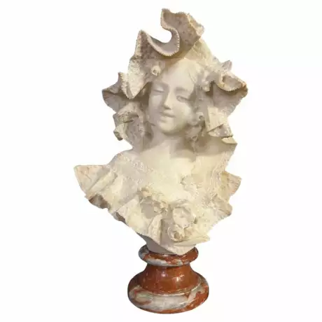 We present you with this exquisite large bust of a beautiful young lady with a large hat, carved in prestigious antique white statuary marble. A unique work of the highest quality and detail, rendering the subjects face, its clothes and especially the hat to appear as if made of lace which in turns contributes to a great visual impact.This bust was hand-sculpted in Italy and is a work of art belonging to the renowned Fratelli Romanelli sculpture workshop.About Fratelli Romanelli:Several generations of Romanelli sculptors have passed through the Florentine sculpture studios doors: Pasquale Romanelli (1812-1887), his son Raffaello (1856-1928), followed by his son Romano, then Folco and currently brothers Raffaello and Vincenzo Romanelli. The ateliers beginnings trace back to Lorenzo Bartolini (Italian, 1777-1850) who lived in Paris as the Bonaparte familys official sculptor. After the downfall of Napoleon, he returns in Florence and has his first studio in via della Scala. Pasquale Romanelli would become his prized pupil and go on to begin the Romanellii family studio in Florence. T.