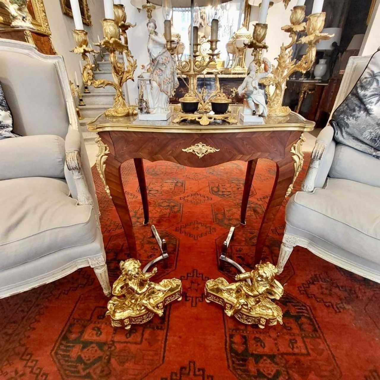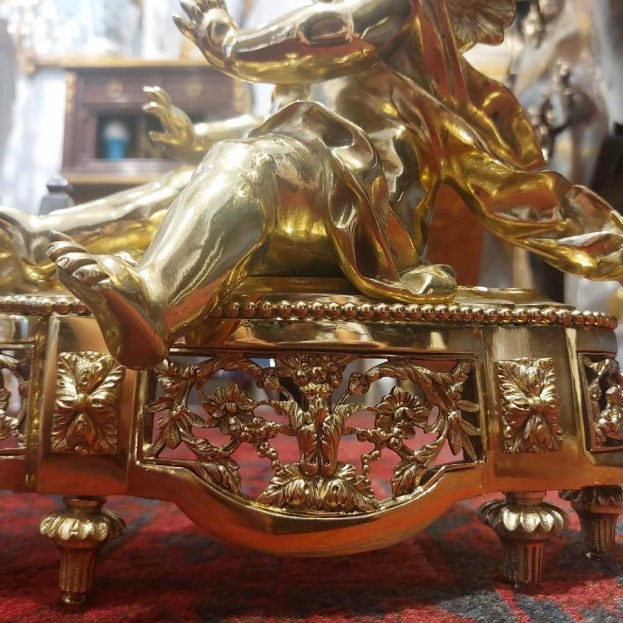 19th Century Pair of Putti Andirons in Gilt Bronze Бронза 19th century г.