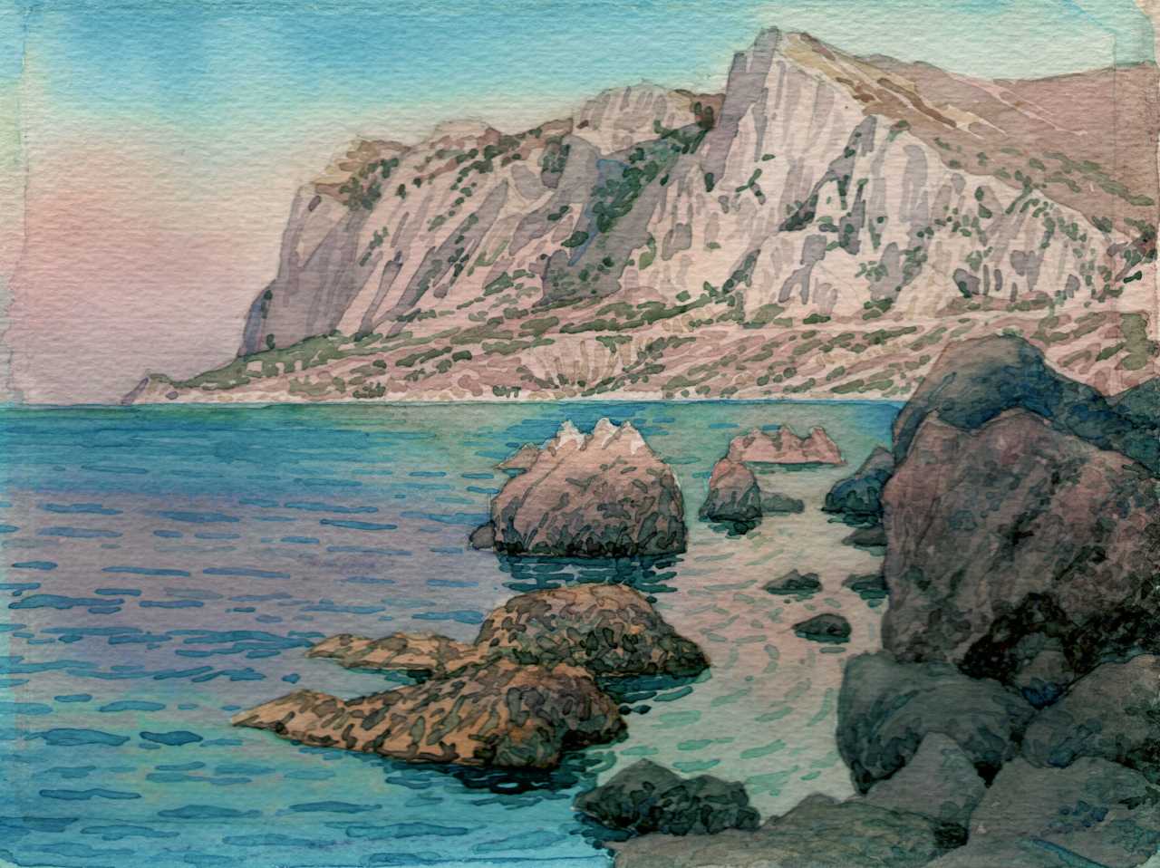 Кокия-Кая. Бумага Акварель Реализм Крымский пейзаж Россия 2001 г.
