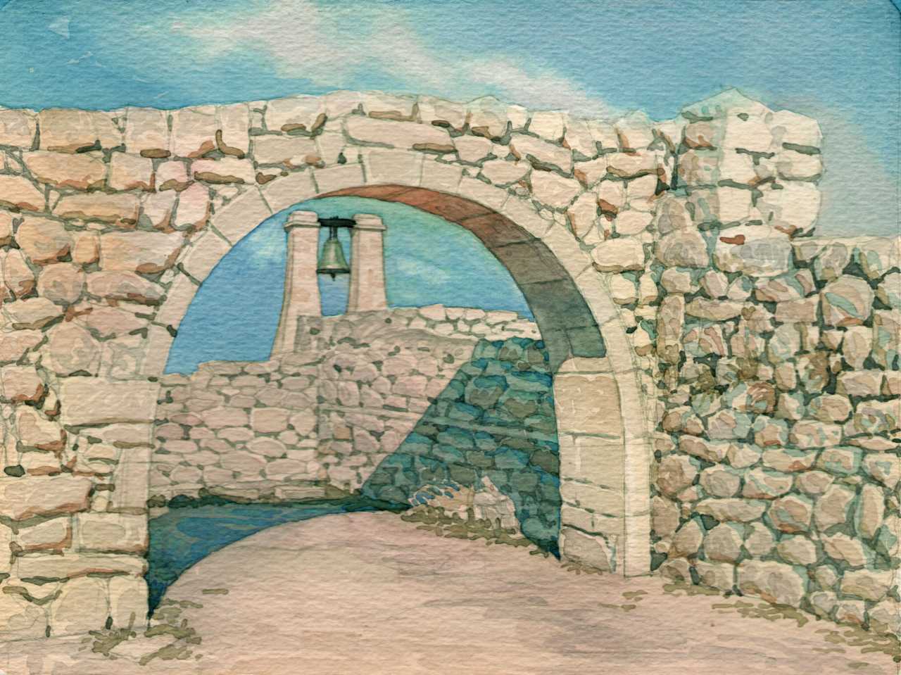 Века Бумага Акварель Реализм Крымский пейзаж Россия 2001 г.