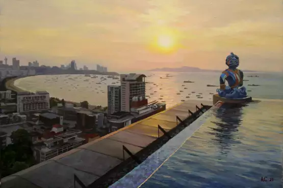 "Патайя" Холст на подрамнике Масло Современный реализм Городской пейзаж Россия Екатеринбург 2025 г.