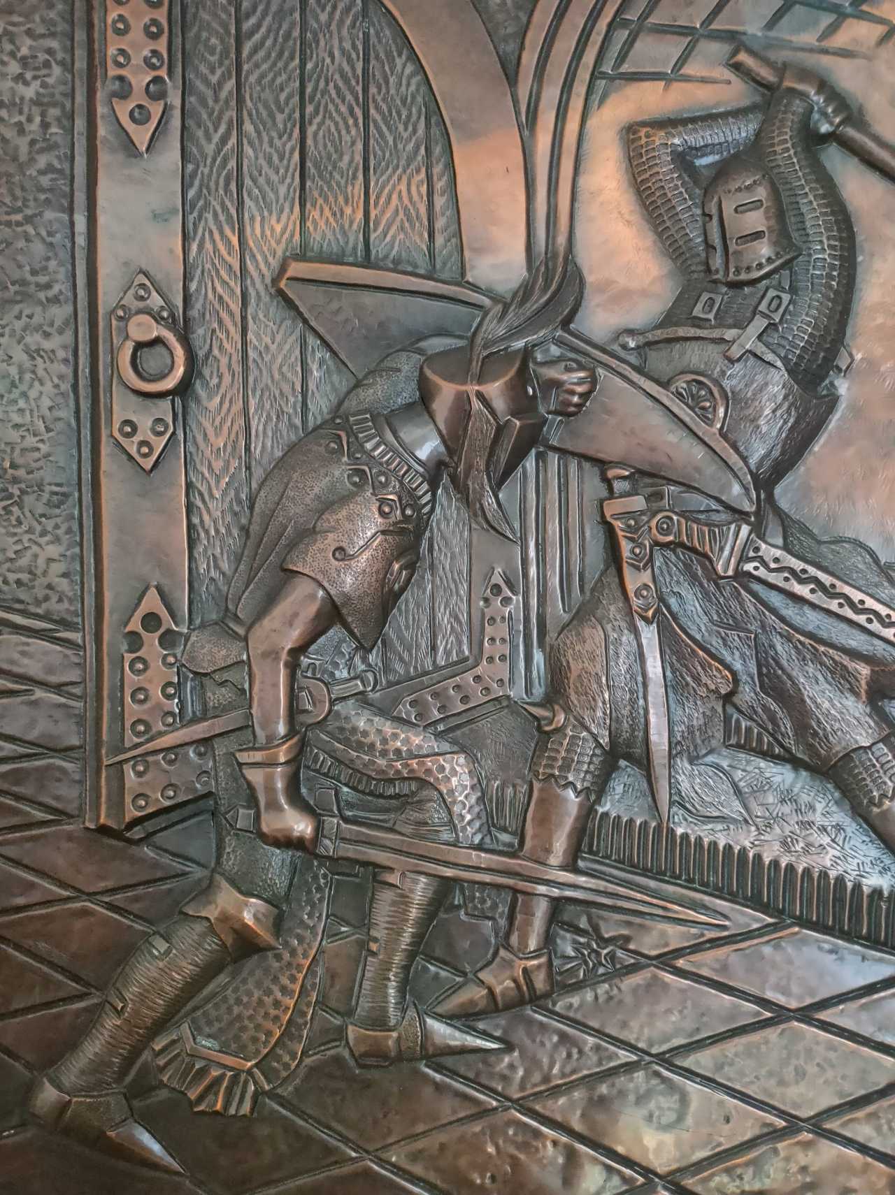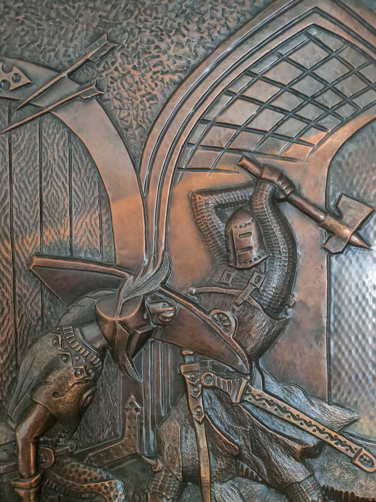 Картина по мотивам репродукций литературного произведения В.Скотта. "Айвенго" .vers.1 Картина изготовлена из целого медного листа. Использованы приёмы металлопластики ,торевтики и чеканки. Ювелирная проработка мелких деталей. Проведено патинирование и полировка. НЕ ГАЛЬВАНОПЛАСТИКА! Ручная авторская работа.