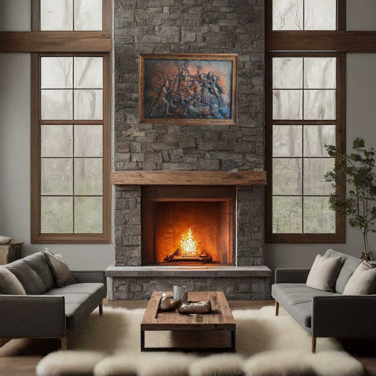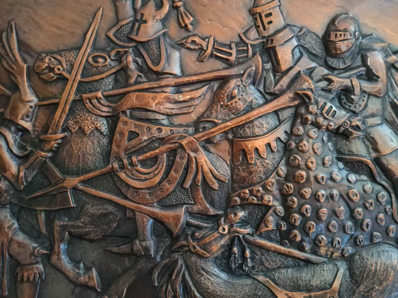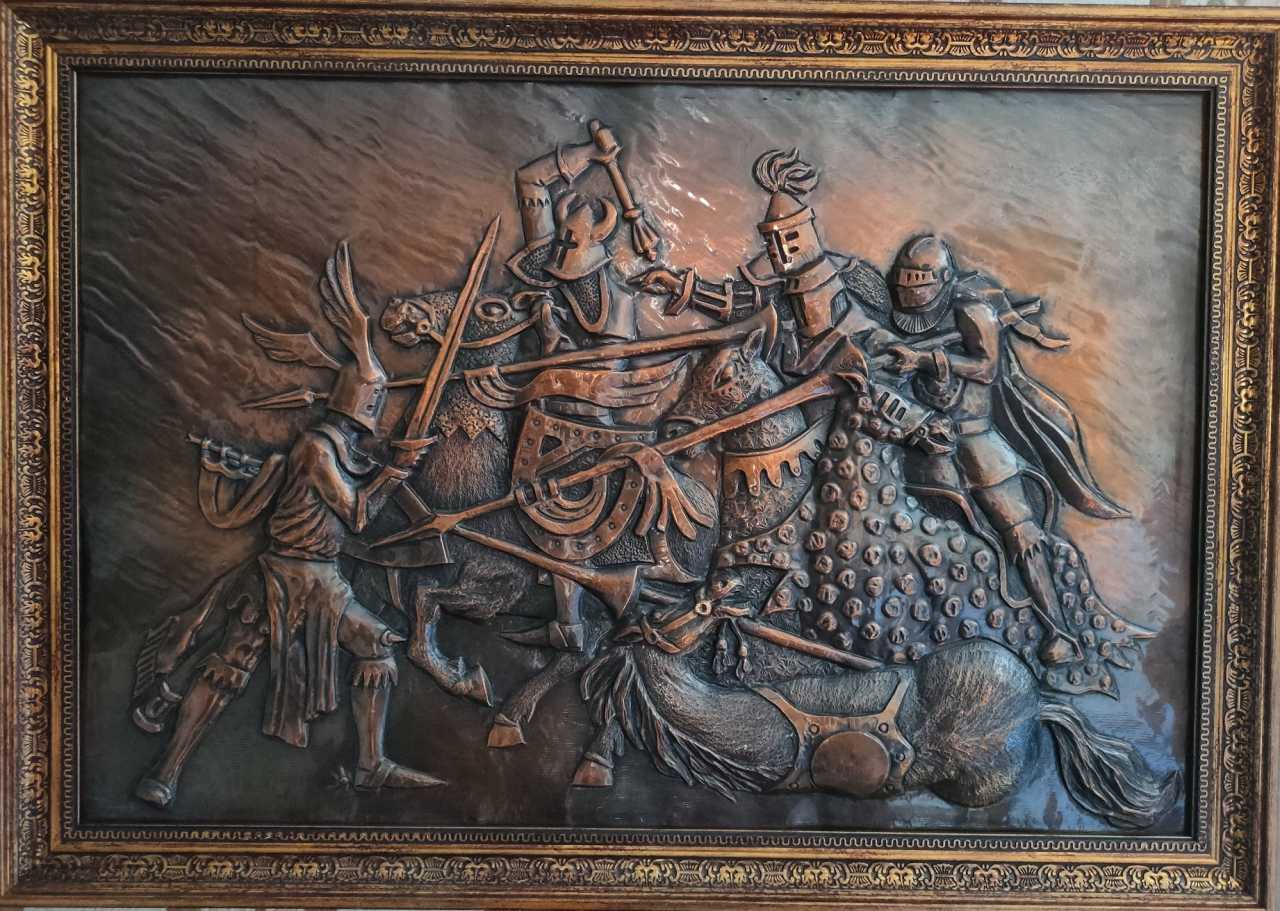 "Рыцарский бой -квартет" Медь Металлопластика Батальная живопись Россия 1994 г.