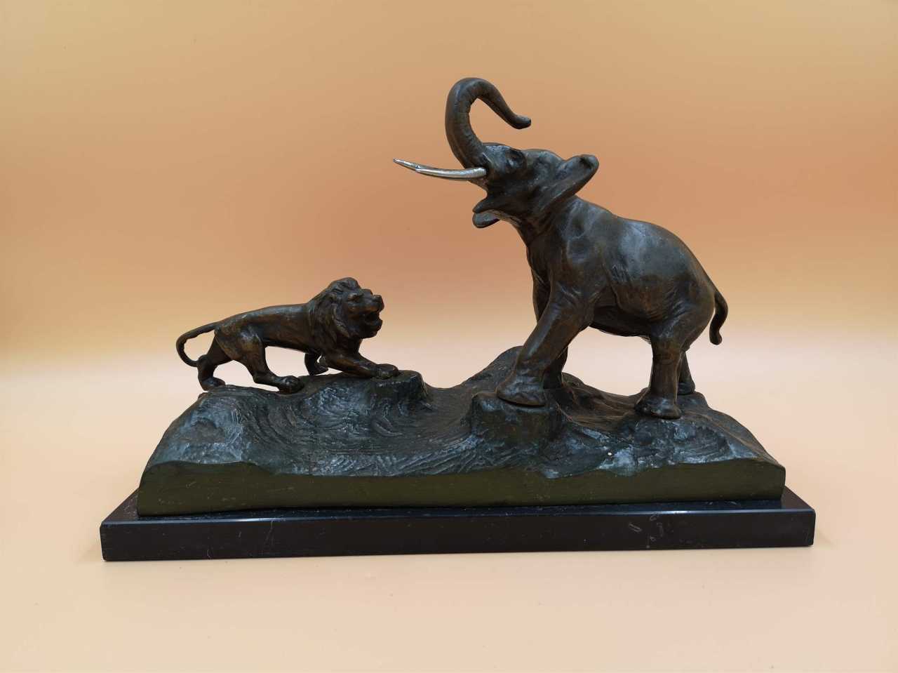 Антикварная бронзовая фигура «Слон и лев» Бронза realism 19th century г.