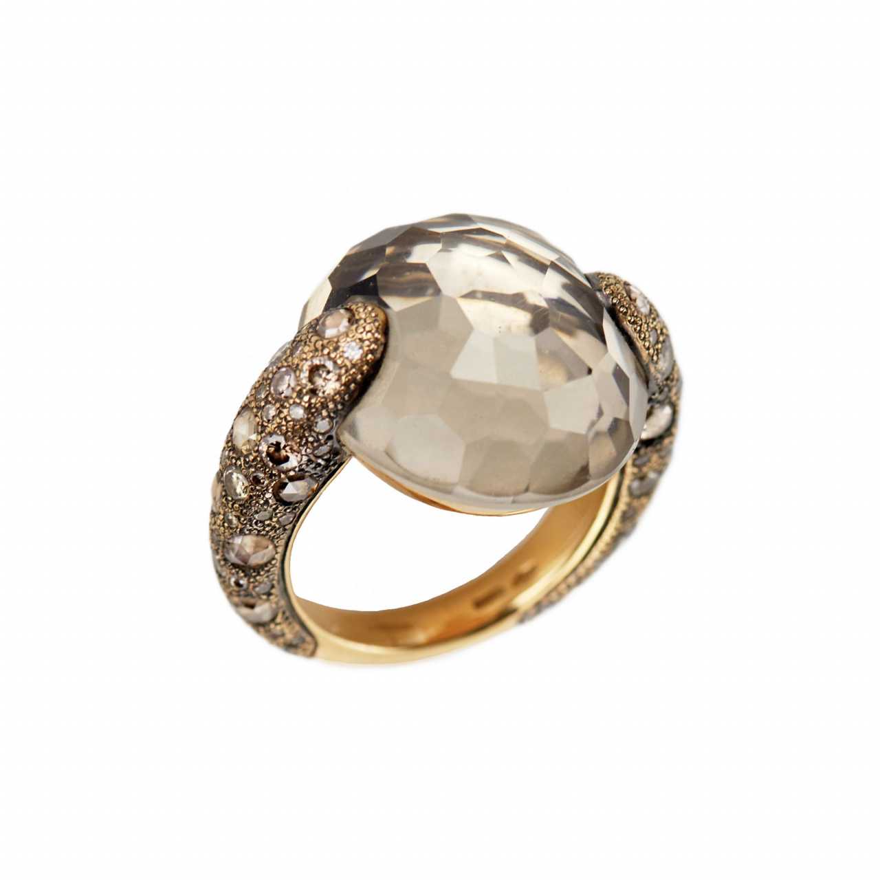 Коктейльное золотое кольцо 18 К Pomellato Tango Smoky Quartz Diamond. Диаманты 21th century г.