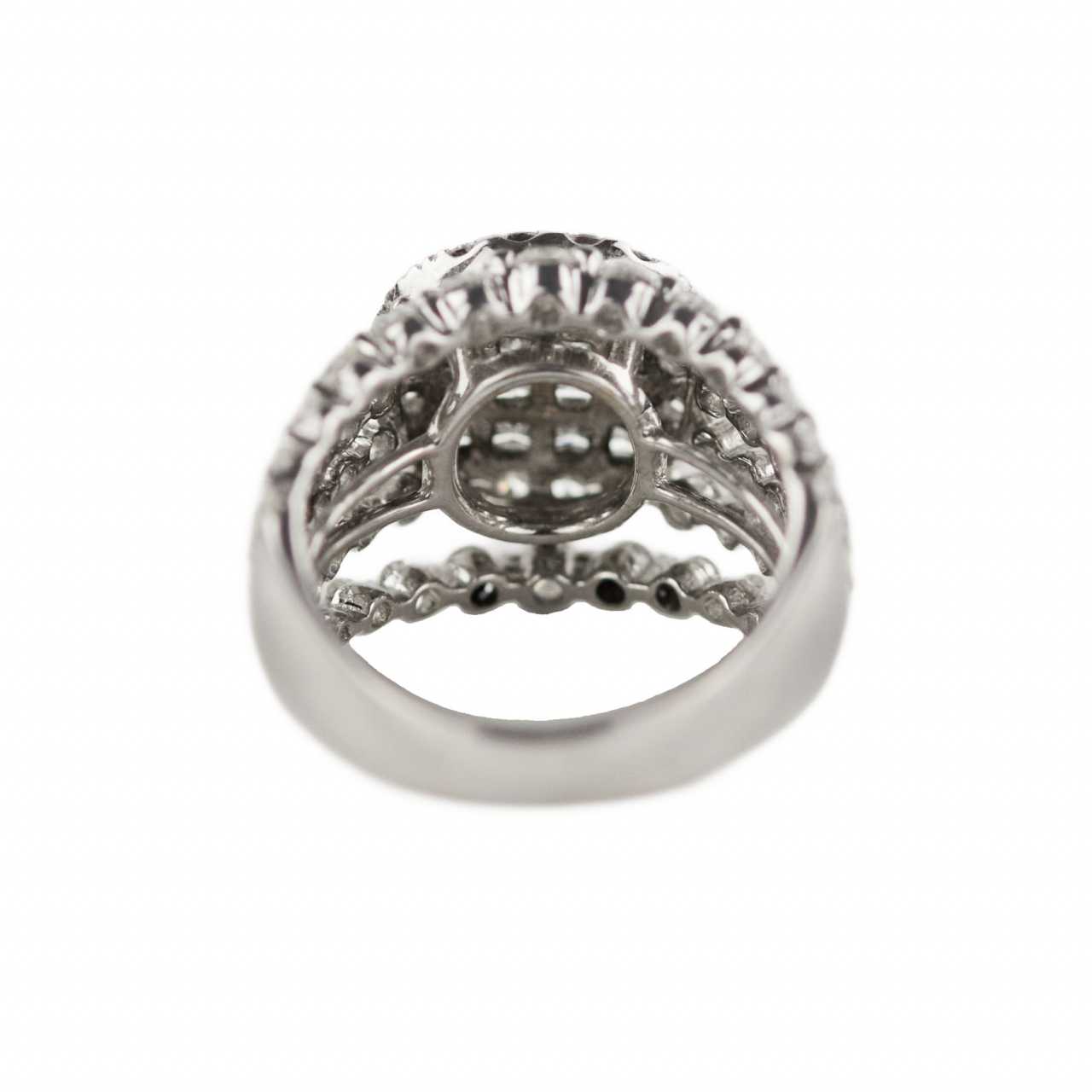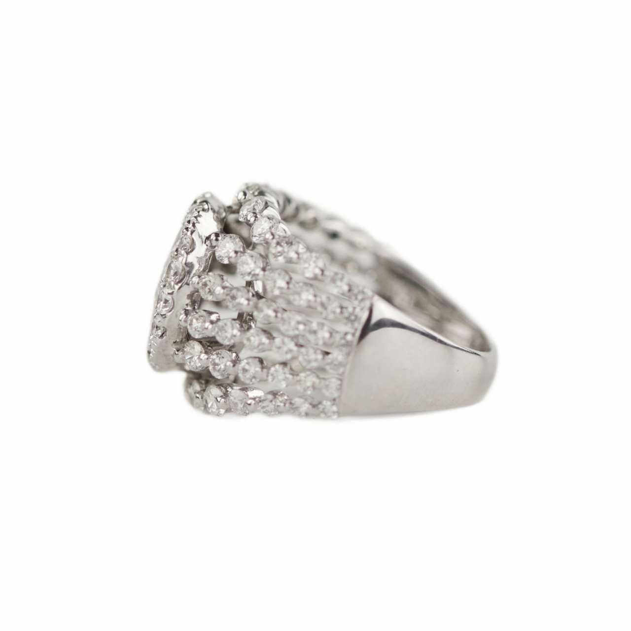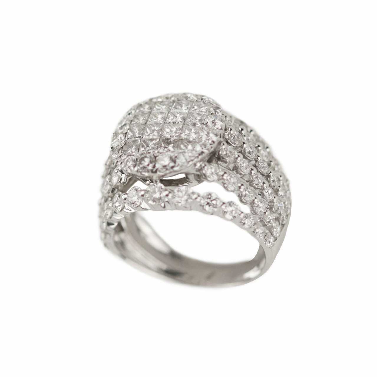 Золотое кольцо 18к с 102 бриллиантами. 86 камней - 2,2 карата, VS-SI. 16 камней: 1 карат, VVS-VS.Размер колца: 16,5. Вес: 7,72 гр. Сертификат Латвийской пробирной палаты: 3-9-11192023.